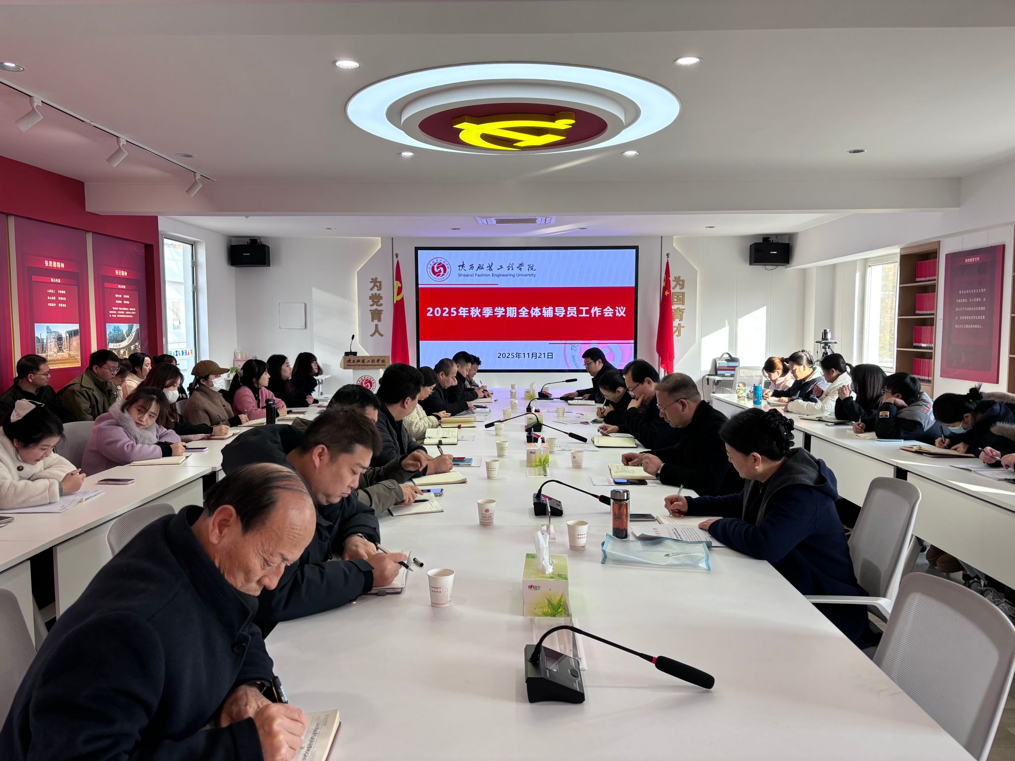 陕服新闻网讯(张维峰)为深入学习贯彻党的二十届四中全会精神,全面落实立德树人根本任务,进一步提升学生工作质量,11月21日,学校在行政中心326会议室召开全体辅导员工作会议。校党委副书记刘继兵出席会议并讲话,各学院分管领导、副书记、学工办主任、全体辅导员,以及学工部、校团委、就业指导中心、心理健康中心全体干部参加会议。刘继兵在讲话中充分肯定了本学期以来学生工作取得的成效,特别是在思想引领、学风建设、就业攻坚、...