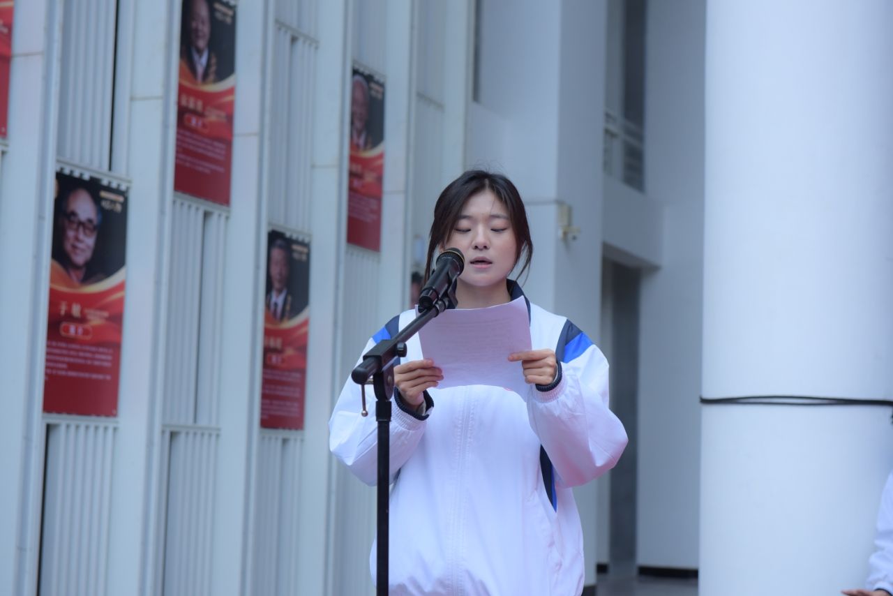 经济管理学院会计学2501班张子甜同学发言,表达新时代陕服学子对革命圣地的向往、对红色历史的敬畏,以及通过实践学习锤炼本领、报效祖国的坚定决心。