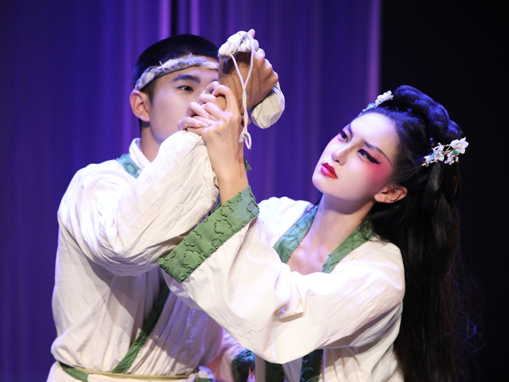 陕服新闻网讯(呼啸吴博)10月19日至20日,第二十四届中国上海国际艺术节“扶持青年艺术家计划”重点剧目——我校服装学院表演系师生共创的改编独幕剧《惜鹤》,在上海戏剧学院端钧剧场成功上演。
