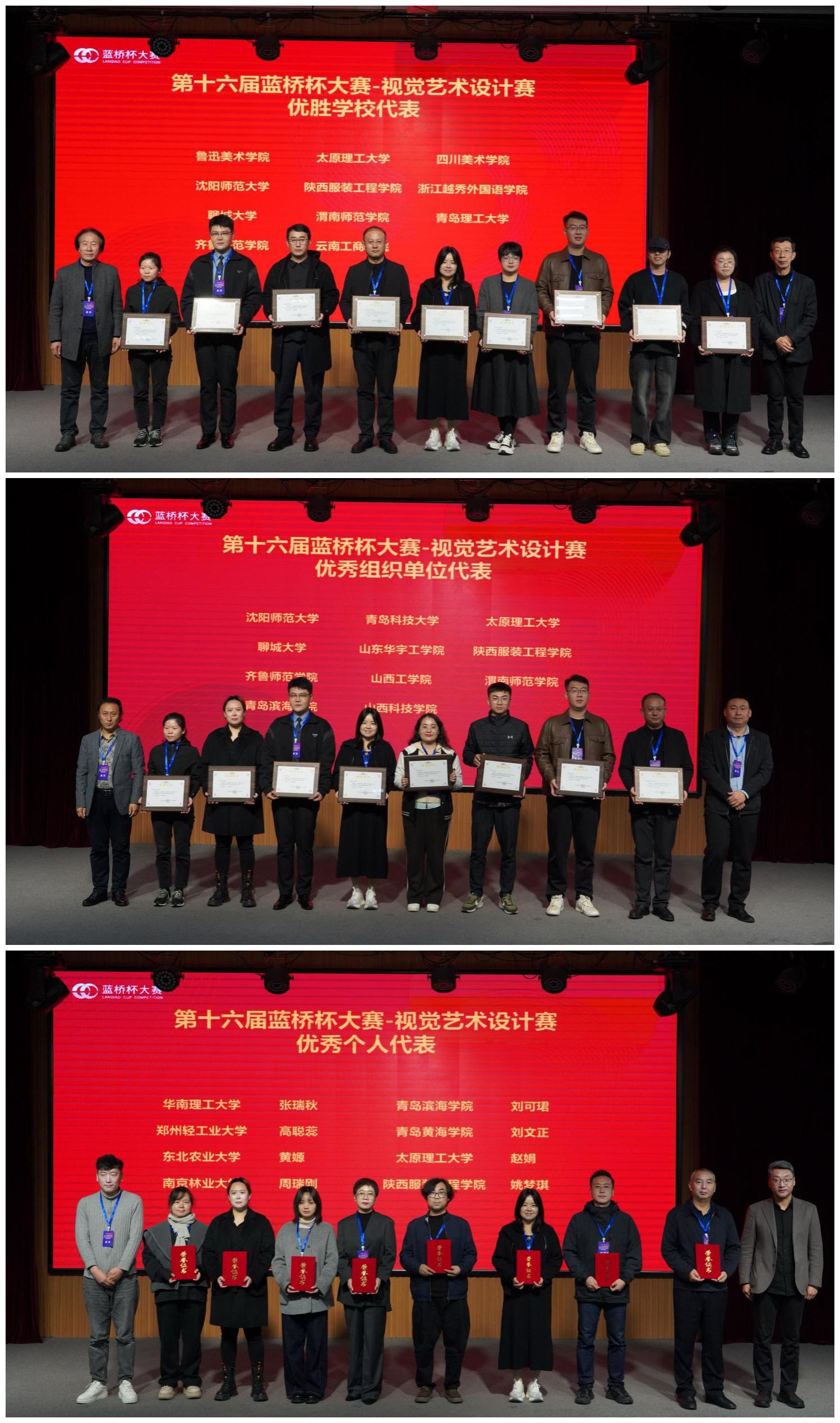 艺术设计学院在第十六届蓝桥杯大赛视觉艺术设计赛中获得佳绩,获国家级奖项2项、省级奖项91项,实现历史性突破。其中,学校荣获“全国优秀组织单位”与“全国优胜学校”双重荣誉,姚梦琪老师获评“全国优秀个人”,充分彰显了学院在艺术设计教学领域的深厚积淀与卓越育人成效。