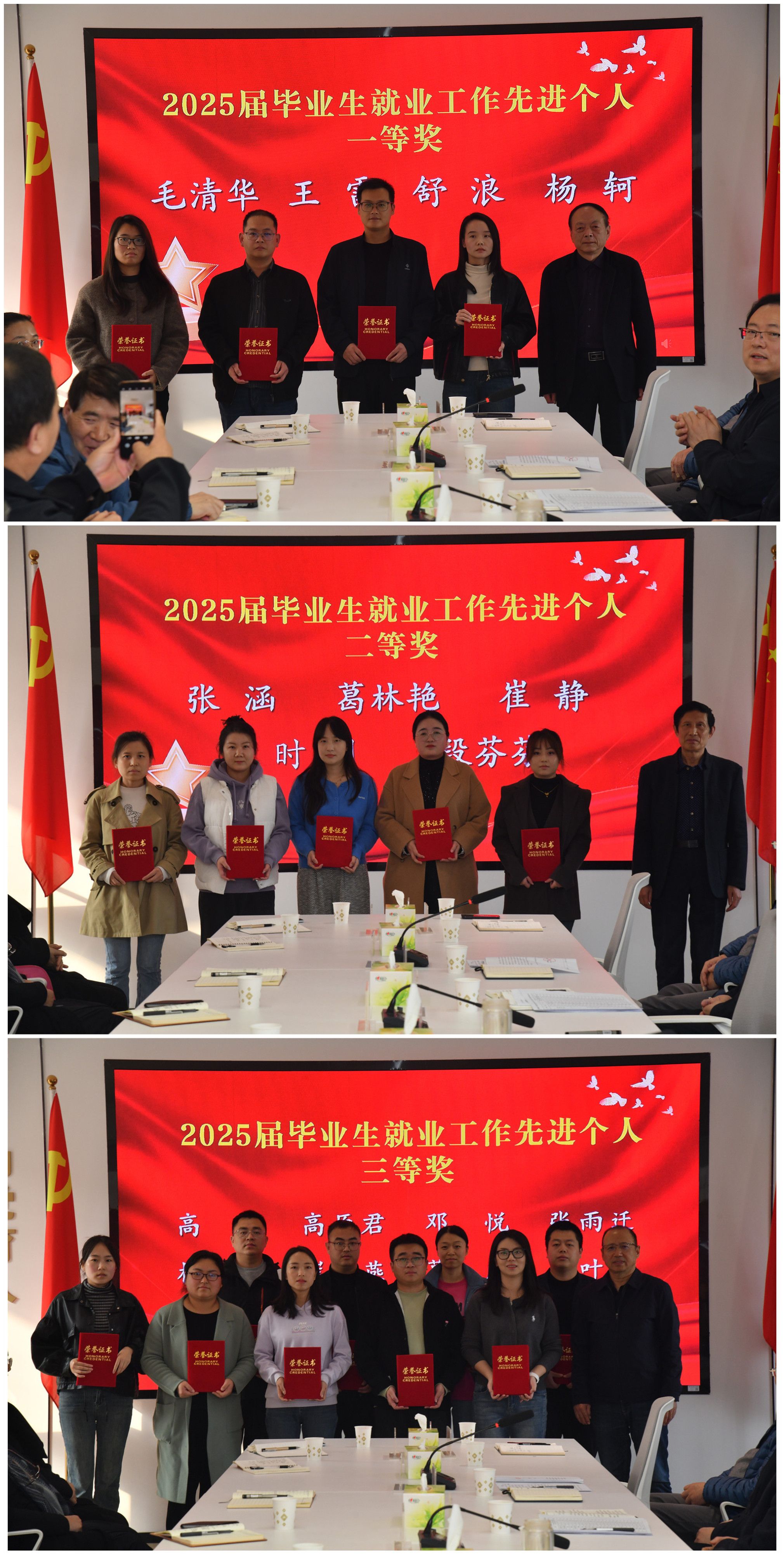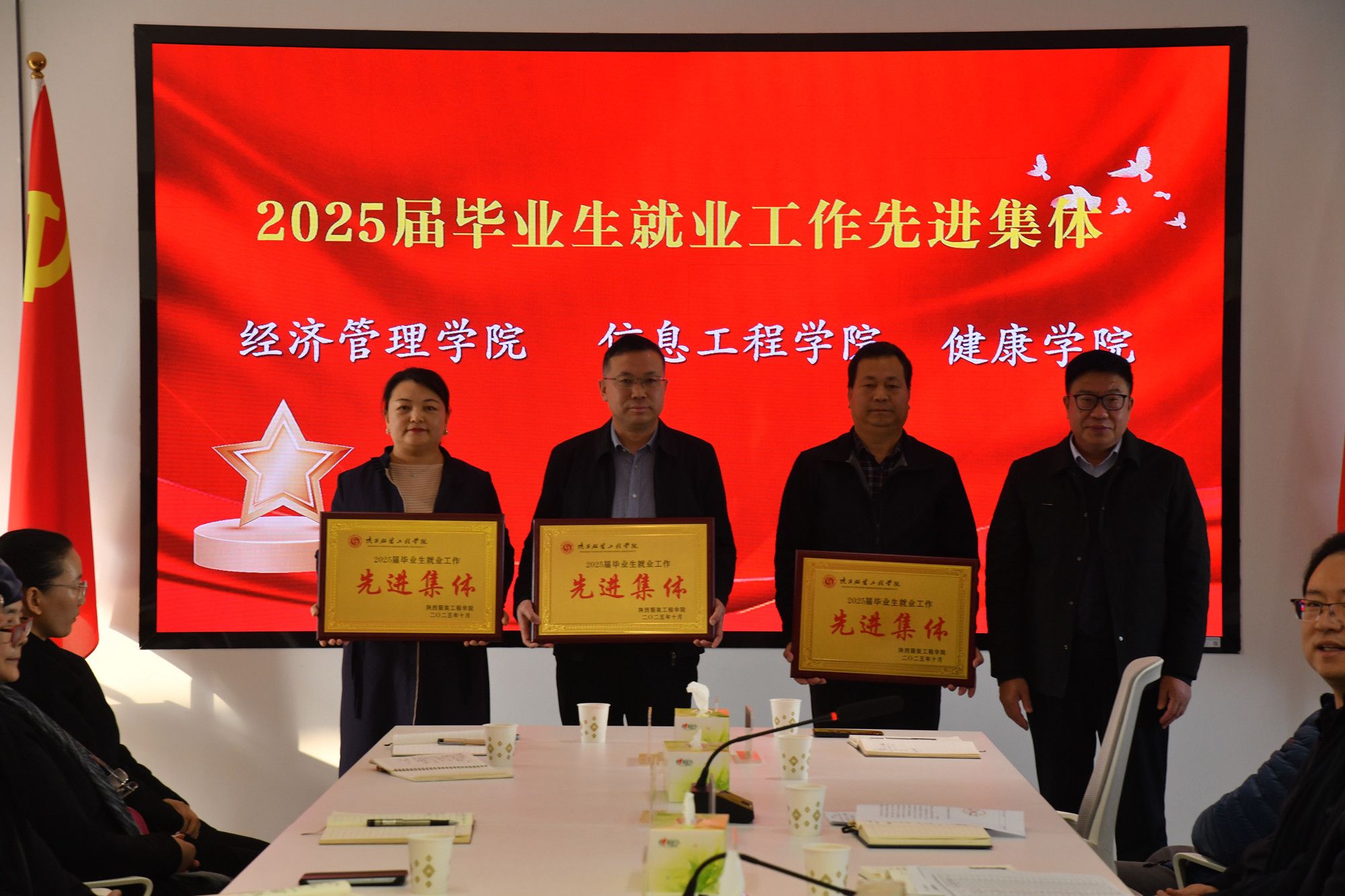 会上,常务副校长黄新民宣读了学校2025届毕业生就业工作表彰决定,经济管理学院、信息工程学院、健康学院荣获2025届就业工作先进集体,毛清华等18名辅导员荣获就业工作先进个人,校领导为获奖单位和个人颁发了奖牌和荣誉证书。