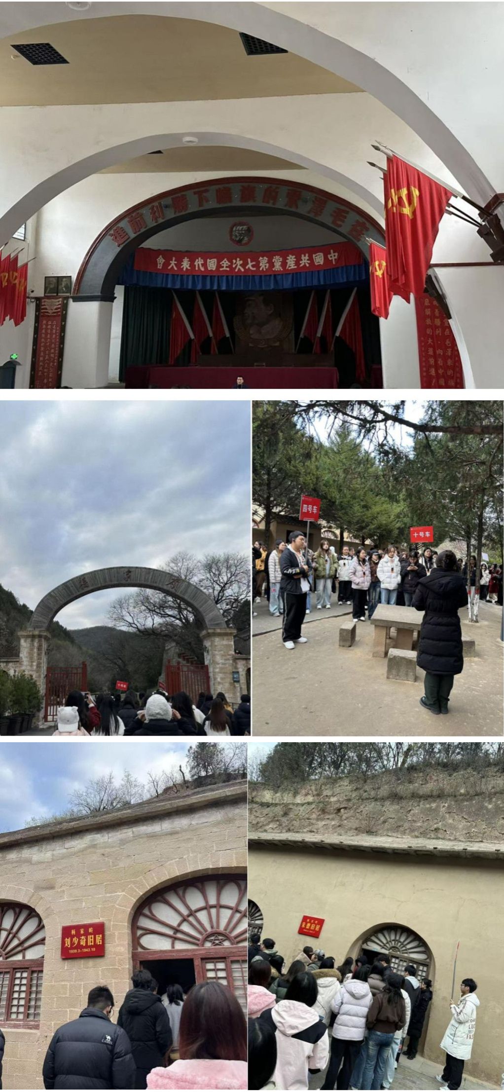 11月9日上午,我校研学团来到了这里,朴素的窑洞、简朴的陈设,与在此诞生的伟大思想形成了鲜明对比。走在毛泽东、周恩来、朱德等老一辈无产阶级革命家曾经生活战斗过的地方,师生们感触颇深。在中共七大会址——中央大礼堂,大家仰望主席台,仿佛能听到历史深处传来的掌声。这里的一砖一瓦、一草一木,都是对“实事求是、艰苦奋斗”最直观、最深刻的诠释,为思政课教学提供了最鲜活的素材。在中共七大会址前,本次研学授课导师勉励同学们铭记峥嵘岁月,把延安精神镌刻进青春奋斗征程,艰苦奋斗、实事求是,全心全意服务党和人民事业。