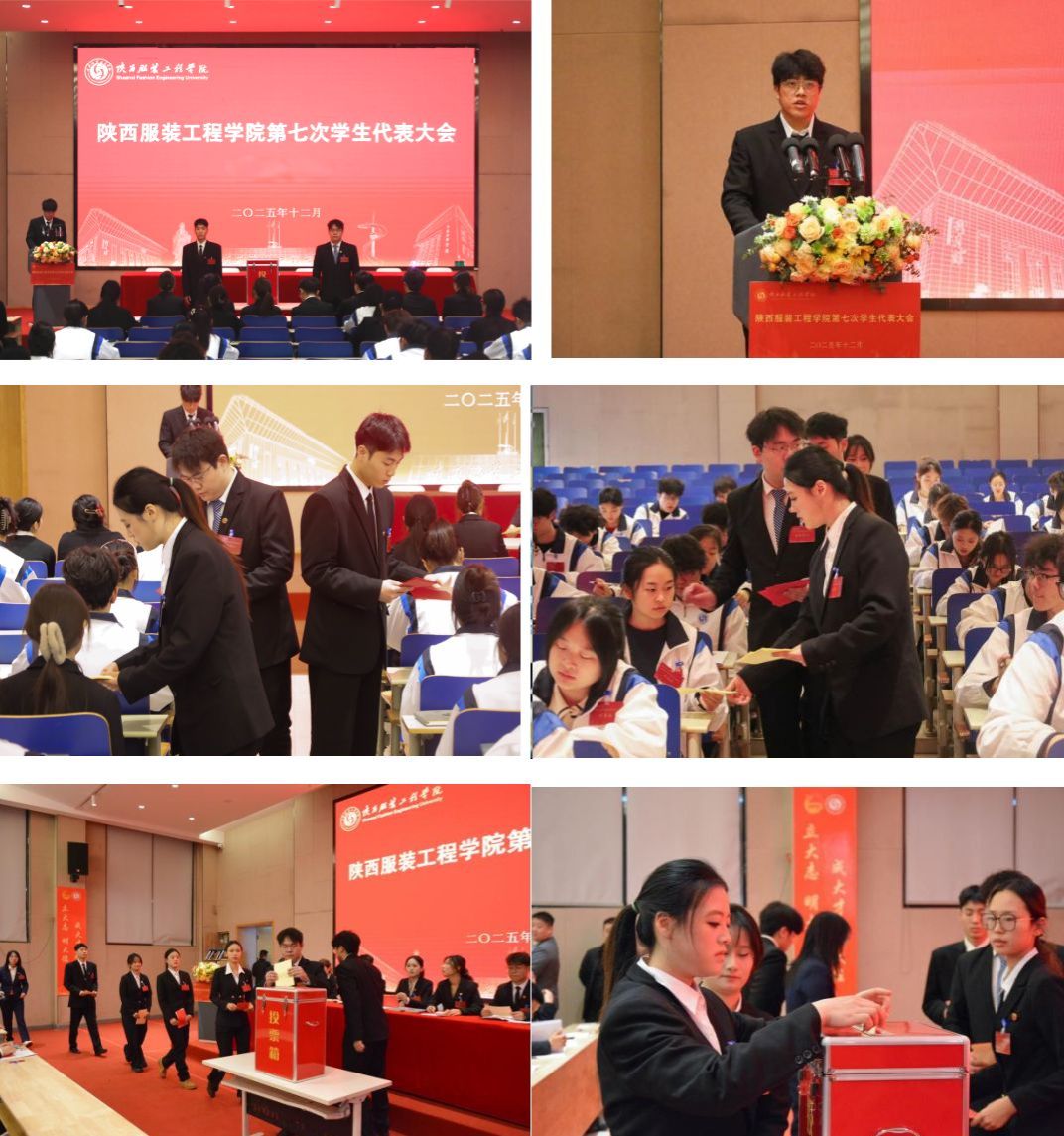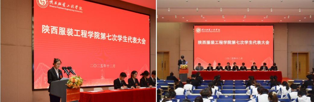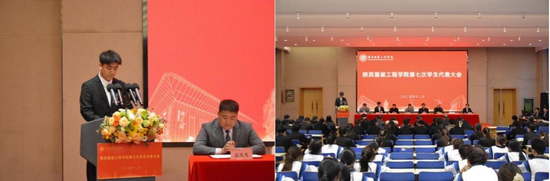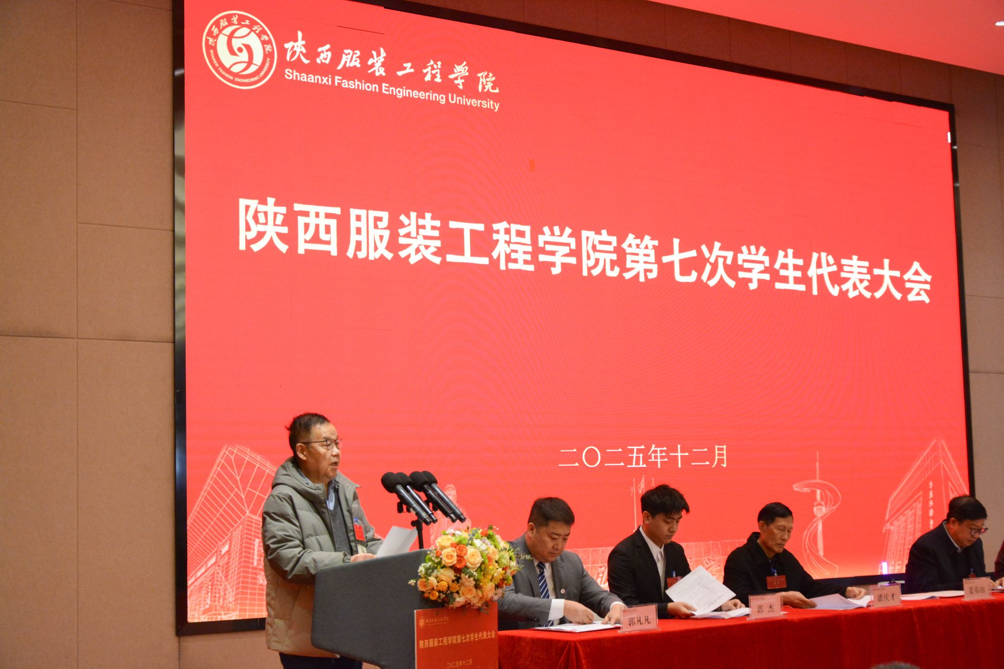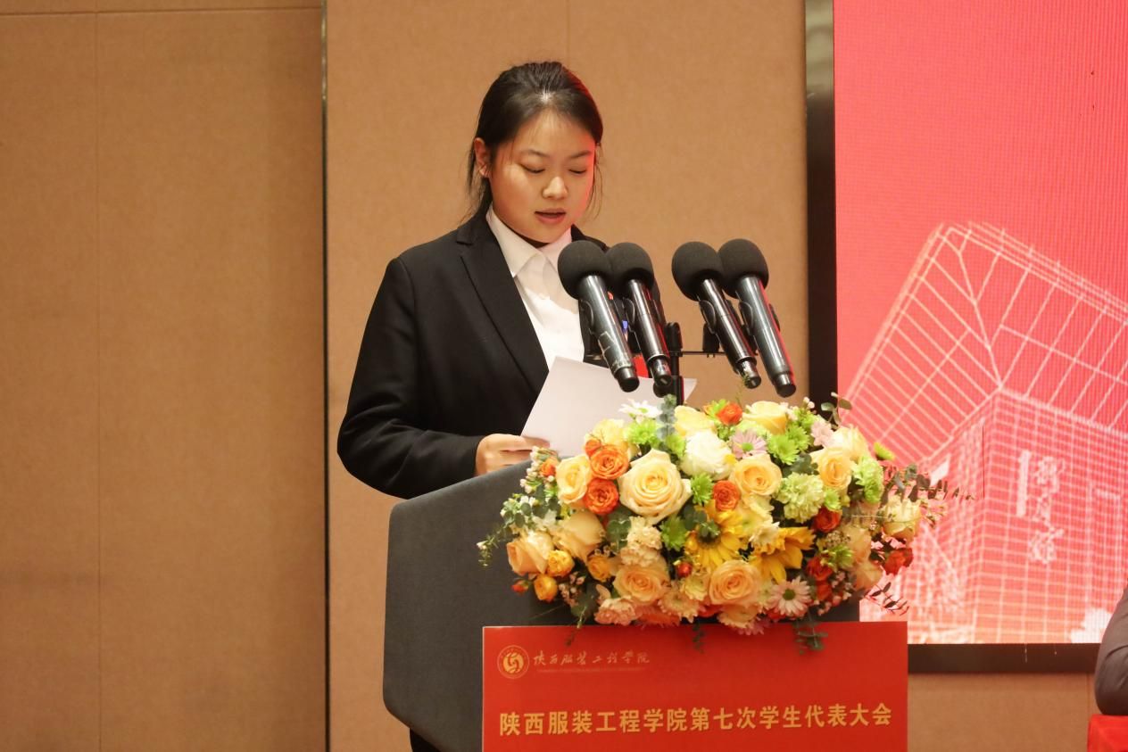 王心愿同学代表第六届学生会委员会作了题为《守正创新践初心,挺膺担当向未来,为全面建设特色鲜明的一流应用型大学注入青春动能》的工作报告。孙亦松同学向大会作了《陕西服装工程学院第七次学生代表大会提案工作报告》。