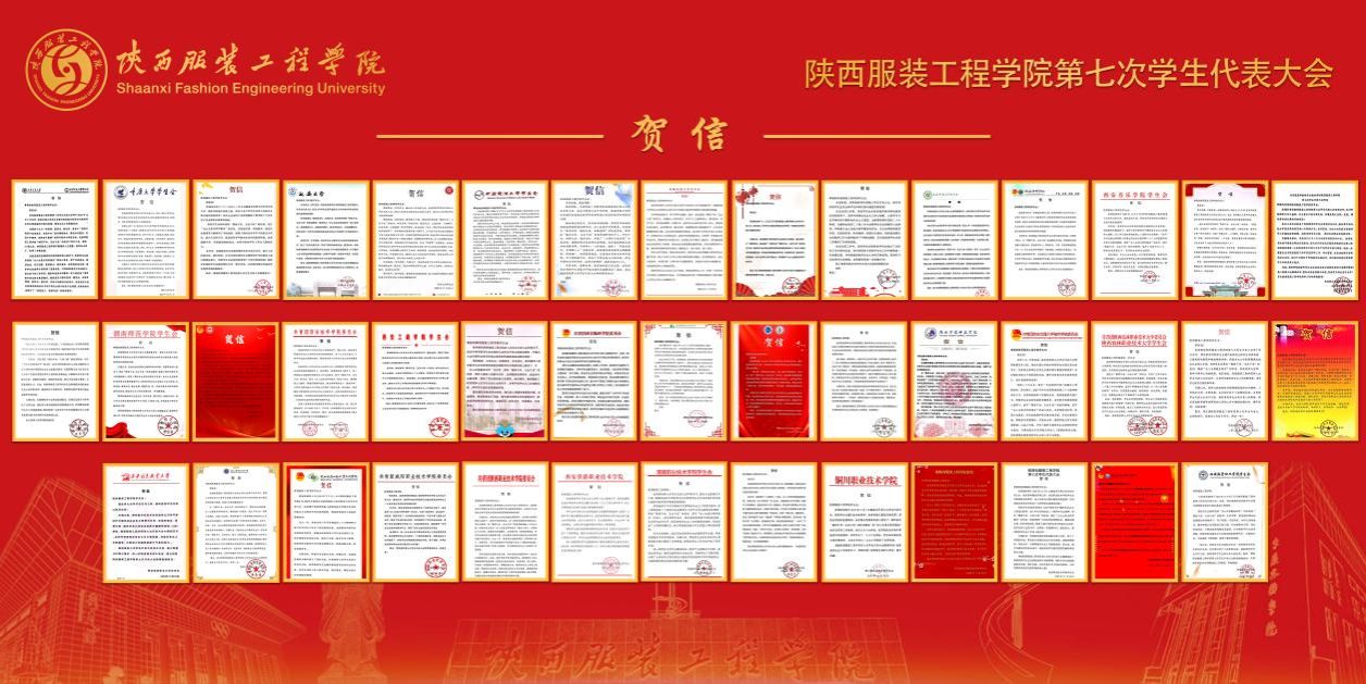 本次学生代表大会收到西安交通大学、重庆大学、西北农林科技大学、延安大学、北京服装学院、西安工业大学、哈尔滨理工大学、西北政法大学、陕西科技大学、西安工程大学、西安理工大学、西藏民族大学、陕西学前师范学院、西安音乐学院、西安体育学院等60余所省内外兄弟院校的贺信。