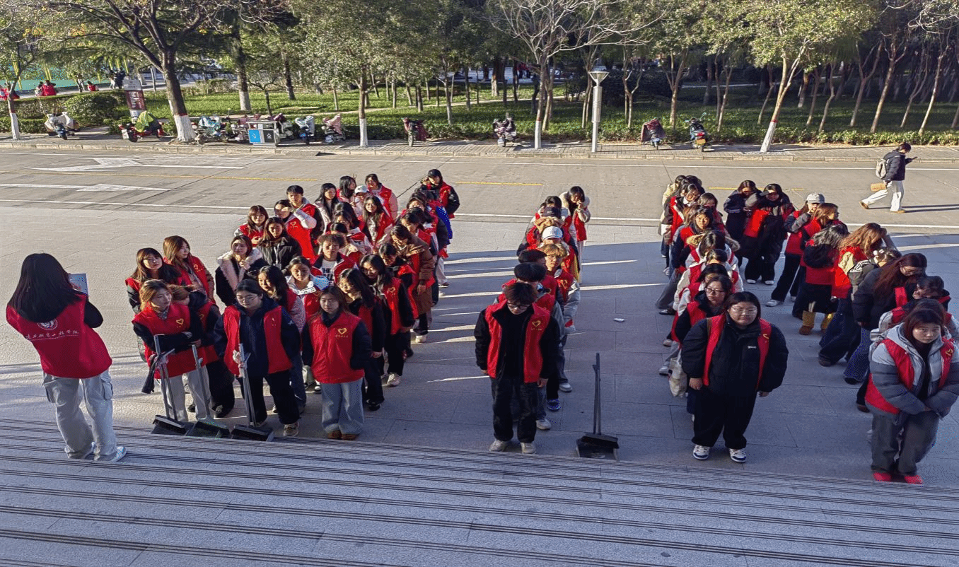 陕服新闻网讯(基础部)为积极推进我校“一站式”学生社区建设进程,深度深化学生劳动教育内涵,大力弘扬志愿服务精神,近期,人文通识教育教研室劳动教育课程的负责老师精心组织上课学生,让他们身着象征着热情与奉献的青年志愿者红色马甲,如灵动的火焰般活跃在校园的各个区域,开展了一场如火如荼、别开生面的劳动实践教育活动,以实实在在的行动为美丽的校园增添绚丽色彩。