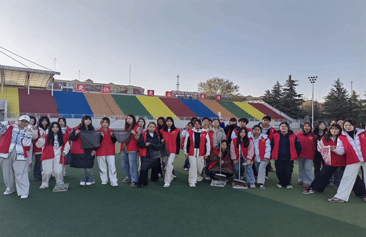 活动尾声,志愿者们手持劳动工具合影,红色马甲在阳光下格外鲜亮。此次劳动实践覆盖操场、教室、实验室等多个区域,不仅美化了校园环境,更让同学们在动手实践中体会到“劳动最光荣”的真谛。“志愿红”穿梭在校园各处,成为秋日里最温暖的风景线——这是陕服学子以劳动践行责任、用青春书写担当的生动写照。