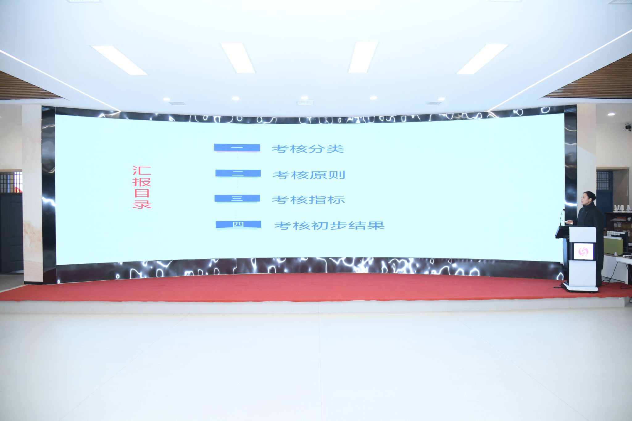 会上,人事处副处长何小侠代表校考核工作领导小组从考核分类、考核原则、考核指标、考核初步结果等方面,对2025年年度考核工作进行了详细地解读和说明。