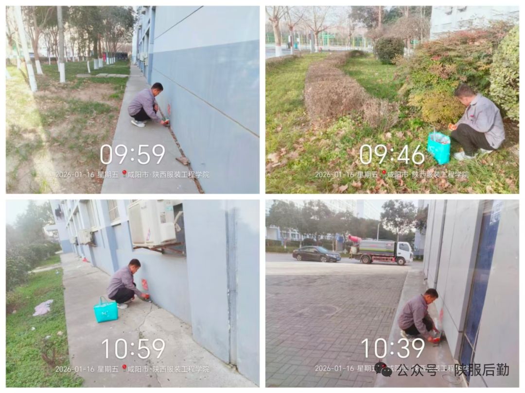 陕服新闻网讯(后勤处、宣传部)寒假期间,后勤处全体人员坚守岗位,以“师生至上、服务为先”为宗旨,以“保障到位、服务暖心、安全有序”为目标,统筹推进设备设施维修、优化服务、提升管理效能,为校园平稳运行提供坚实保障,用坚守与担当筑牢校园安全防线,为新学期顺利开学夯实基础。