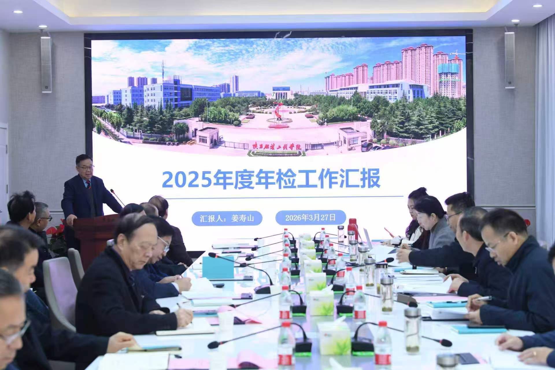 姜寿山作2025年度年检工作汇报。他首先对2024年度年检反馈意见整改情况作了汇报。接着,他从评估攻坚取得建设性成果;“三融”教育增强服务发展能力;引育并举加强师资队伍建设;抓招生就业筑牢发展根基;创新学生教育管理彰显立德树人成效;统筹发展与安全提升校园治理效能;开放办学拓展学校影响力等八个方面对2025年学校的主要工作、取得的成绩和存在的问题做了全面汇报。从强化党建引领加强政治保障;加强内涵建设,提升人才培养质量;深化综合改革,健全提质增效机制保障;优化专业结构,主动适配AI技术变革;建强人才队伍,夯实人才强校关键支撑;完善招培就联动,筑牢学校发展生命线;加快数字转型,升级智慧校园支撑能力;打造特色文化,增强校园凝聚力影响力;健全服务体系,提升师生获得感幸福感;坚守安全底线,建设平安和谐校园等十个方面对学校2026年重点工作计划做了汇报。