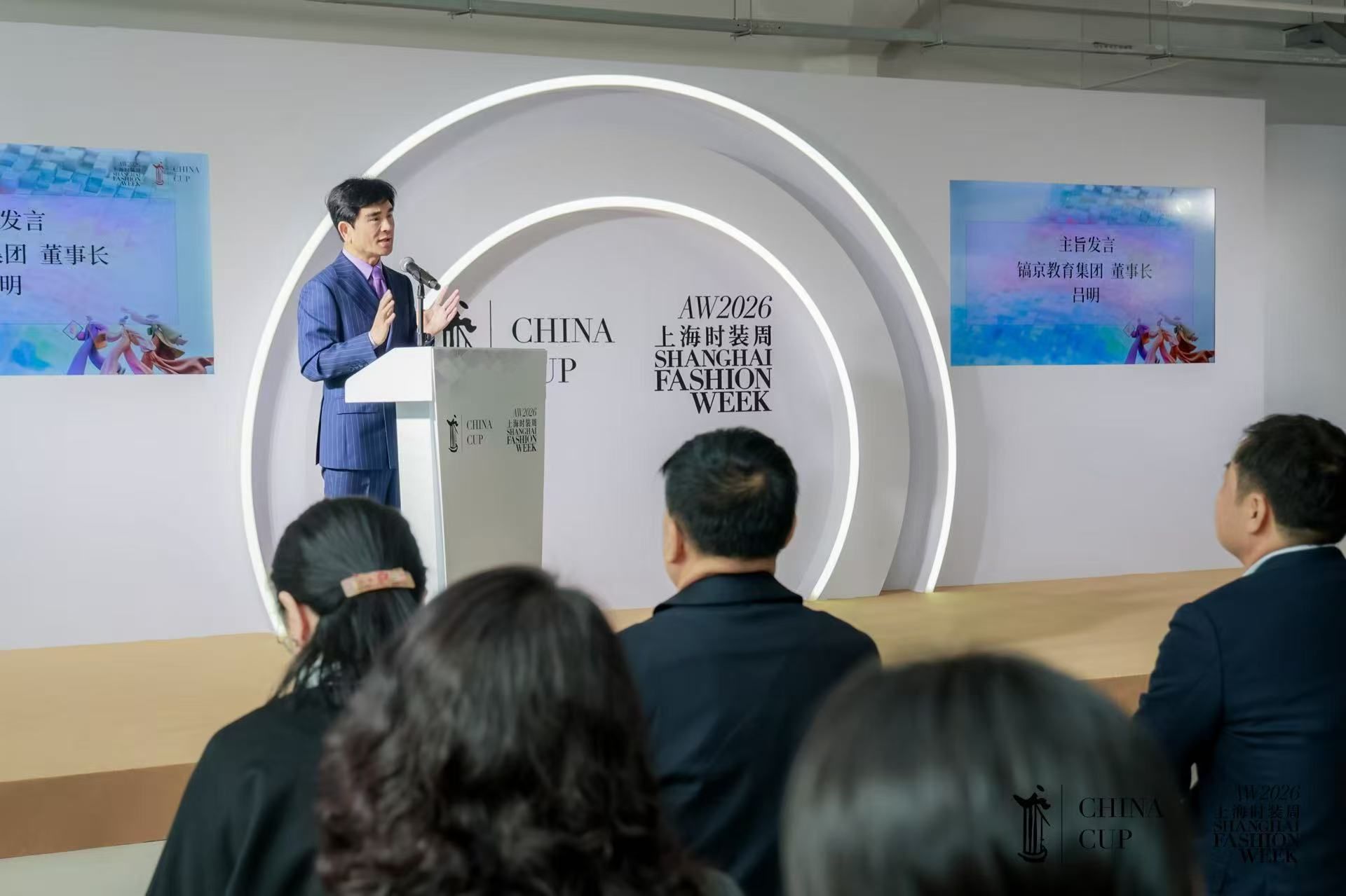 陕服新闻网讯(服装学院)3月26日,作为上海时装周的重头戏,2026中华杯时尚院校产教融合展盛大启幕。在启动仪式暨时尚产业人才成长联盟会议上,学校董事长吕明发表讲话,分享我校产教融合实践经验与创新模式,强调产教融合是培养时尚领域创新型人才的关键,对推动时尚产业高质量发展具有重要意义。学校副董事长吕超、服装学院师生代表参加活动。