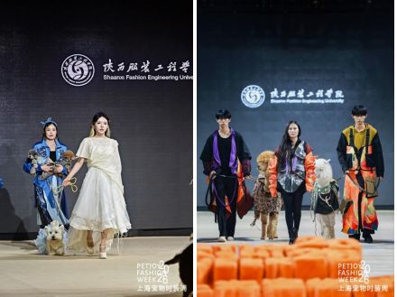 陕服新闻网讯(服装学院)近日,第六届上海宠物时装周在上海国际时尚中心举行。我校服装学院现代服装产业学院、服装表演专业师生携原创毕业设计与艺术作品,在“流浪超模”公益走秀中精彩亮相,以时尚为媒,融合产教资源与公益理念,成为本届时装周的亮点。