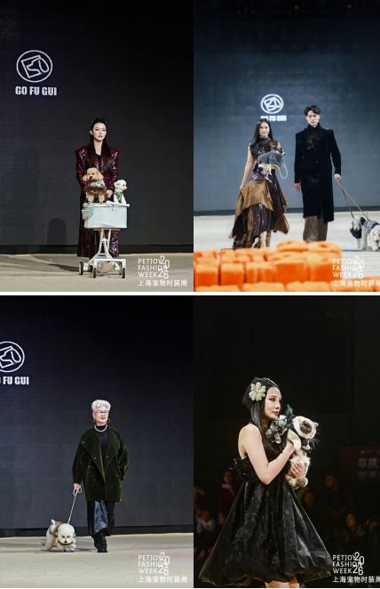 活动中,我校学生将毕业设计、优秀艺术作品与宠物时尚创意相结合,把服装设计、面料工艺、造型美学延伸至宠物服饰领域,为宠物时尚注入青年设计力量,探索人宠时尚共生的多元可能。这不仅是一次跨界的教学实践,更是青年设计师以针线为媒,对生命尊重与设计伦理的青春表达。一针一线间,既缝制出宠物服饰的精致轮廓,也勾勒出人宠和谐、温暖共融的美好未来。由我校孵化的学生品牌“GoFuGui”表现特别抢眼。该品牌已连续四次亮相上海宠物时装周,并成功登上北京国际时装周舞台,成为高校孵化宠物时尚品牌的标杆之作。