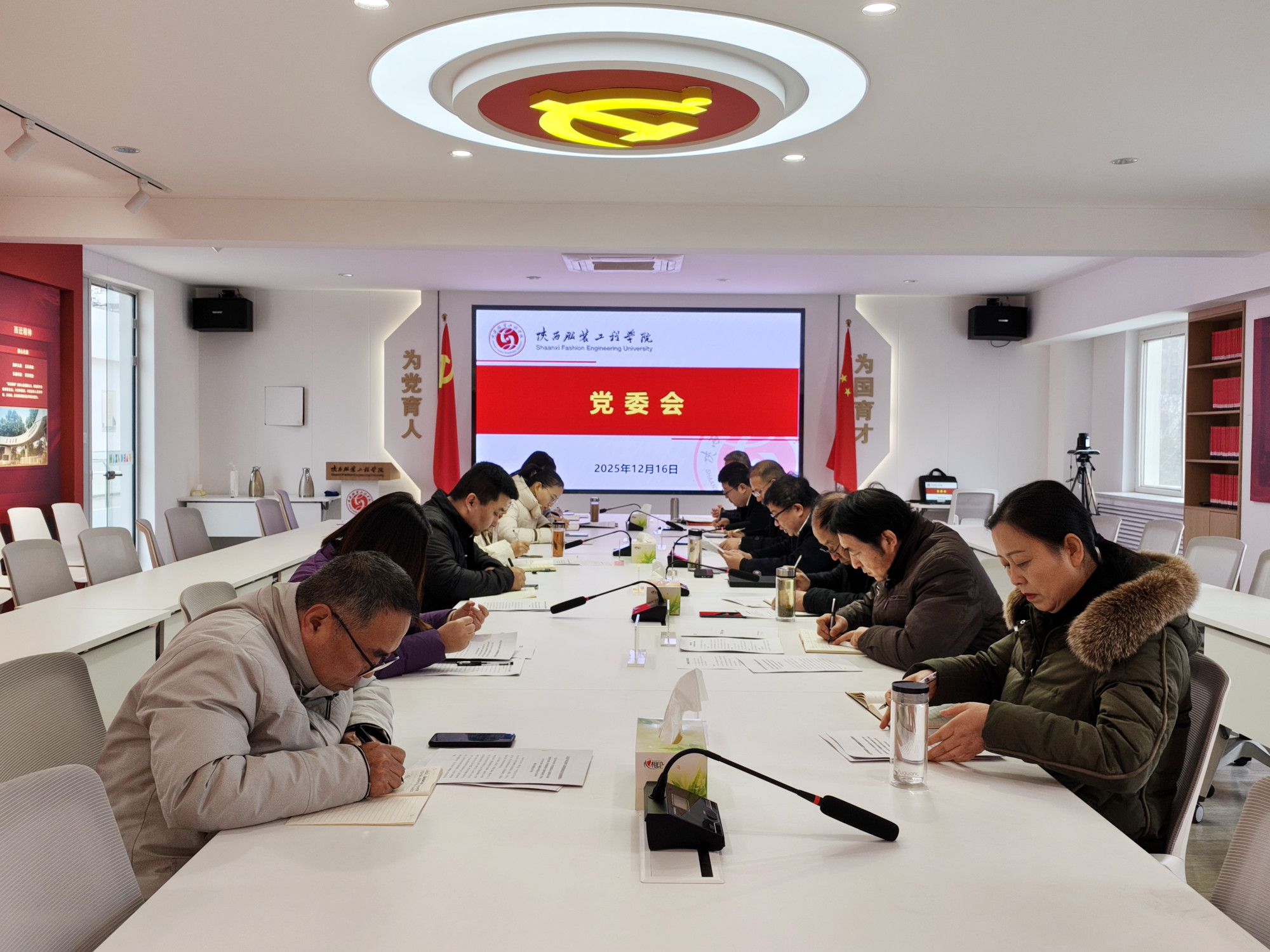 陕服新闻网讯(李文斌)12月16日上午,学校在行政中心326会议室召开党委会,学习习近平总书记近期重要讲话重要指示精神,传达贯彻上级会议精神,安排部署近期工作。校党委委员、纪委委员和党委工作部门负责人参加会议。党委书记王岗主持会议并作总结讲话。会上,认真学习习近平总书记关于未成年人思想道德建设的重要指示精神、习近平在中共中央政治局第二十三次集体学习时的重要讲话精神、习近平给中国志愿者服务联合会第三届会员代表大会祝贺信,...