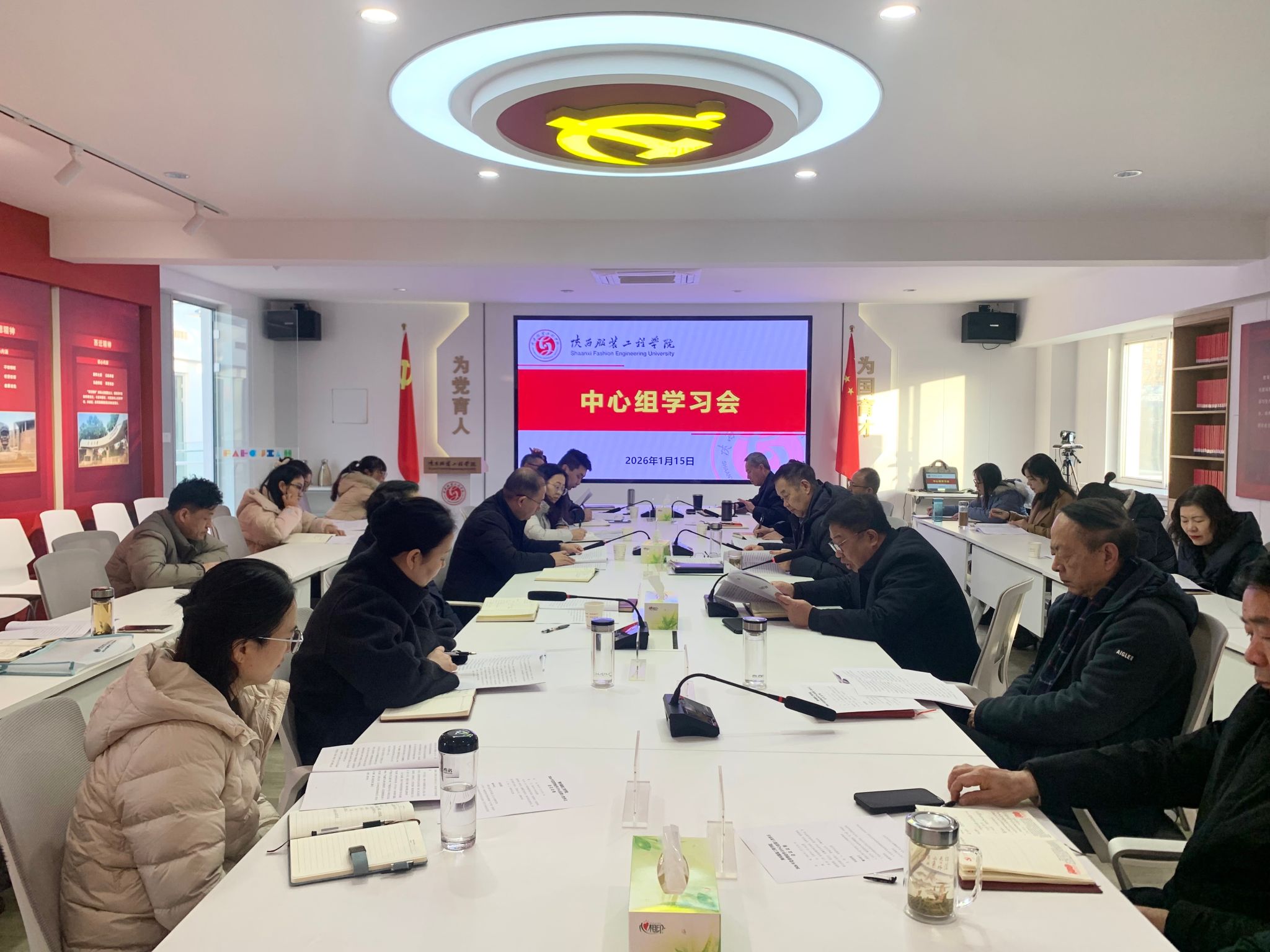 陕服新闻网讯 (菅建伟)1月15日上午,我校召开2026年党委理论学习中心组第1次学习会议,深入学习习近平总书记近期重要讲话精神,传达学习中省有关会议精神。校党政领导班子成员、党委委员、纪委委员,各院党委、党总支、直属党支部书记,机关各党支部书记,党委工作部门负责人,党政办主任、人事处处长参加会议。党委书记王岗主持会议并讲话。 会议集中学习了国家主席习近平二〇二六年新年贺词、习近平总书记在《求是》杂志发表署名文章《...