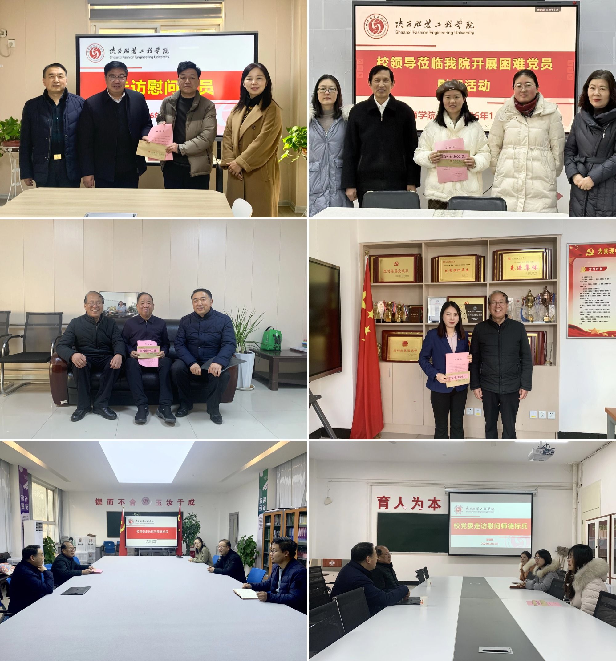 陕服新闻网讯(党委工作部)寒冬送暖,岁末情深。1月15、16日,校党委书记王岗、副校长潘庆才,校党委委员、校长助理罗文谦在党委组织部、宣传部相关负责人的陪同下,分别走访慰问我校光荣在党50年以上老党员,以及困难党员、师德标兵,为他们送去了省委教育工委、校党政的关怀、新春的祝福以及慰问金。走访期间,王岗、潘庆才、罗文谦与党员同志们亲切交谈,仔细询问他们的身体健康、家庭生活和工作情况,了解实际困难与需求,详细介绍学校在2025年各项事业中取得的新进展、...