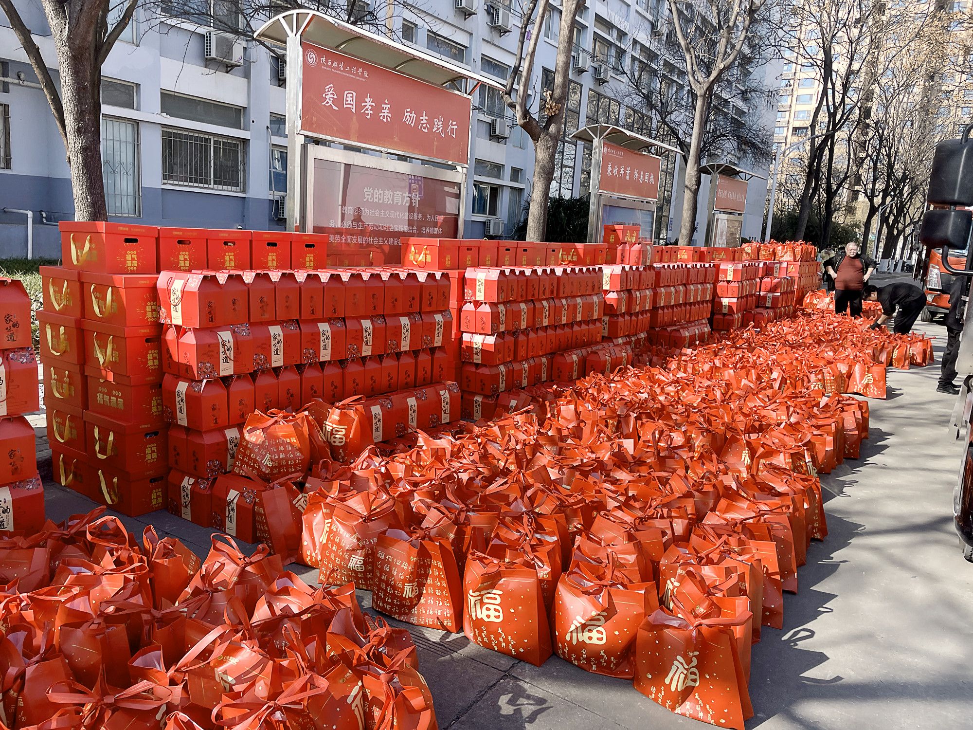 陕服新闻网讯(李文斌)新春在望,岁暮天寒。为感谢全校教职工一年的辛勤付出,1月12日上午,学校在阳光广场举行元旦春节慰问品发放活动,向全体教职工送上大米、面粉、食用油、农特产品及节日礼袋礼盒等丰厚而温暖的慰问品,提前致以诚挚的新春祝福。活动现场暖意融融,秩序井然。学校人事处与校院两级工会工作人员亲手将一份份满载心意的慰问品递到教职工手中,并与大家亲切交流,感谢他们过去一年在各自岗位上的默默耕耘与无私奉献。...